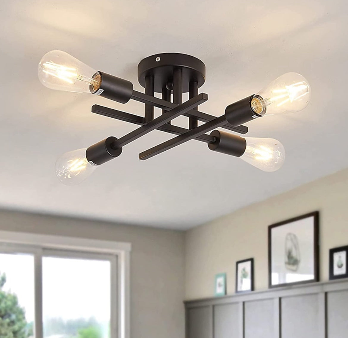 its clean lines and durable metal construction ensure long-lasting quality, while the open design highlights filament bulbs (not included), creating a warm and cozy atmosphere.